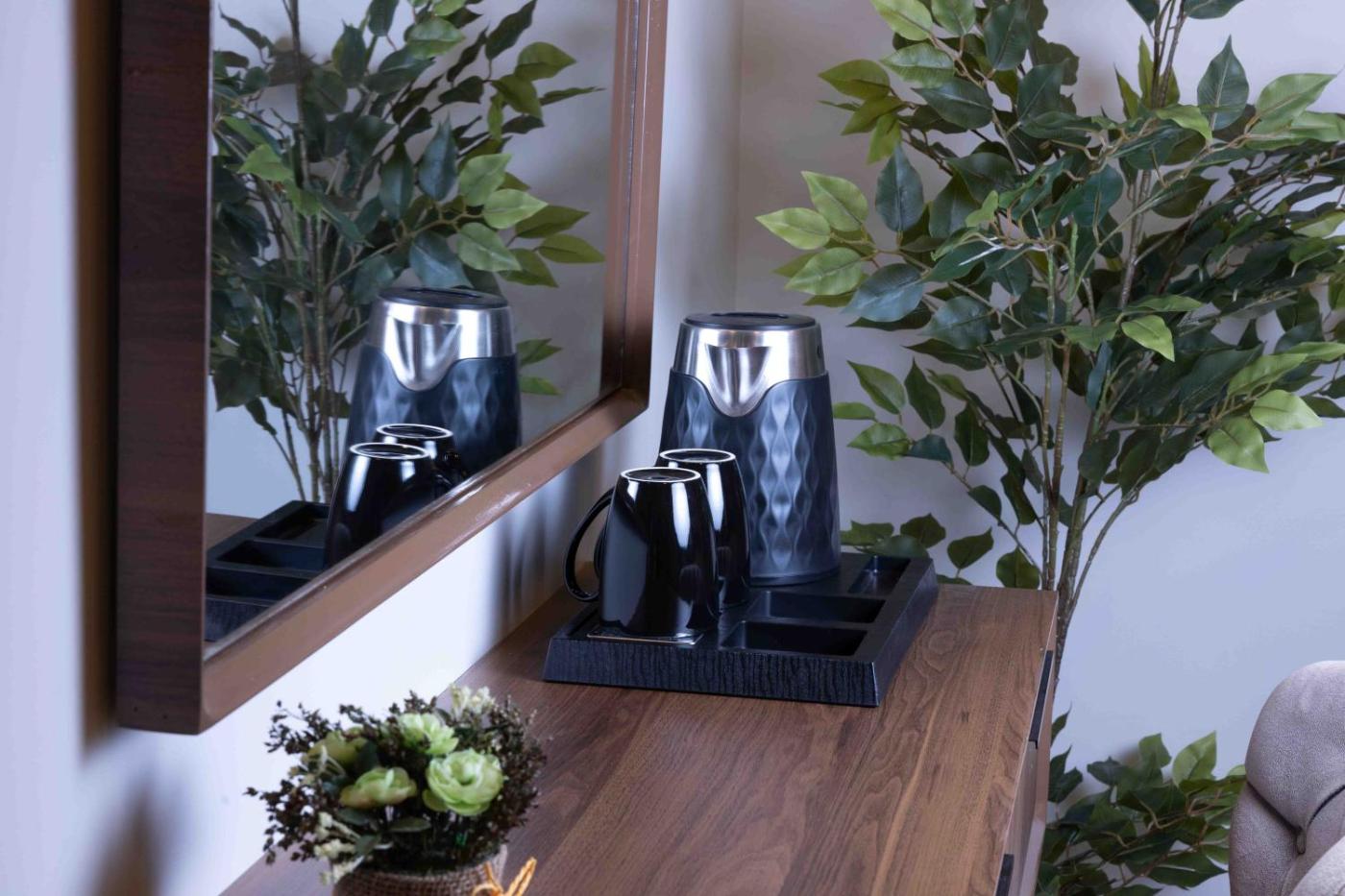 Shared stationery such as printed menus, magazines, pens, and paper removed