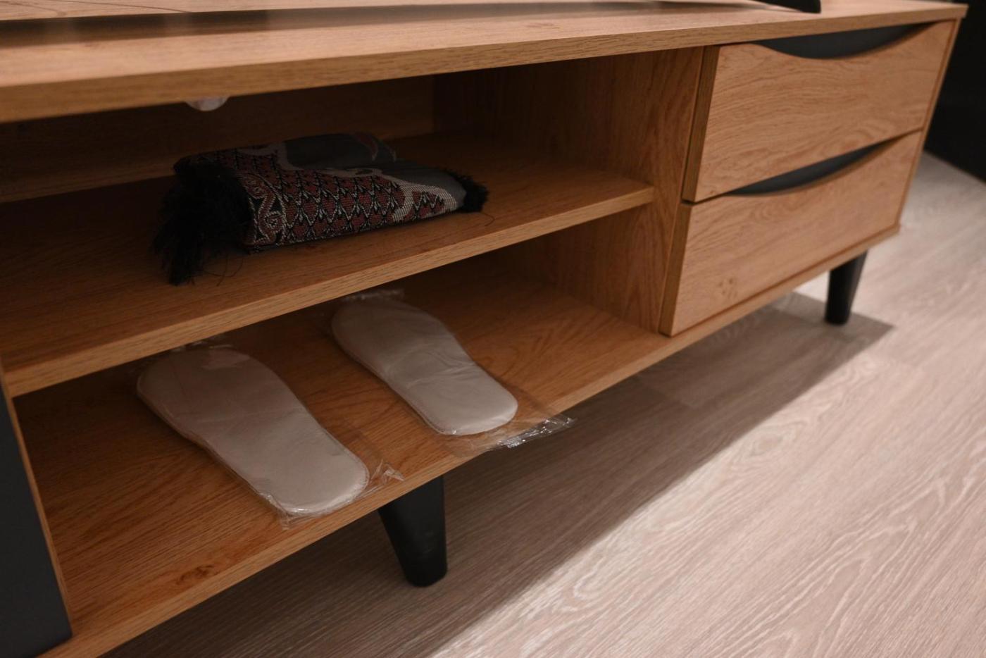 One-Bedroom Apartment. The fireplace is the standout feature of this apartment. The apartments kitchenette, which features a refrigerator and a microwave, is available for cooking and storing food. The apartment has parquet floors, a seating area with a flat-screen TV with streaming services, air conditioning, a tea and coffee maker, as well as a dining area. The unit has 2 beds.